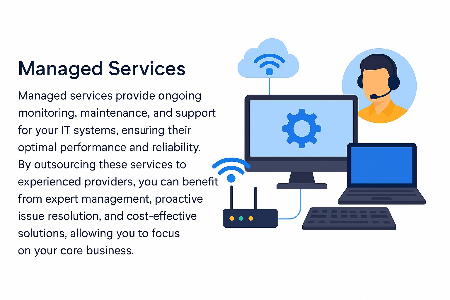 Managed Services give your business full IT support, monitoring and maintenance without hiring an in-house team. We ensure your network, servers and applications stay secure, optimized and running smoothly with 24×7 expert supervision.